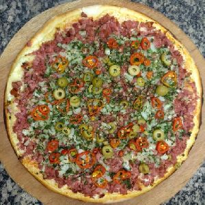 Calabresa Moida , Cebola, Mussarela, Pimenta Vermelha, Salsa